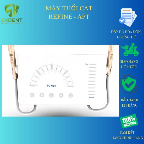 Máy thổi cát nha khoa Refine APT là thiết bị chuyên dụng trong lĩnh vực nha khoa, được thiết kế để loại bỏ mảng bám, vết ố và làm sạch bề mặt răng một cách hiệu quả. Sản phẩm kết hợp công nghệ Air Polishing System với chức năng Piezo Ultrasonic Scaler, mang lại giải pháp toàn diện cho việc chăm sóc răng miệng.